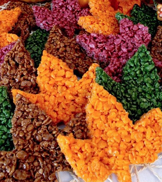 Use a leaf cookie cutter to cut out the Rice Crispy Treats