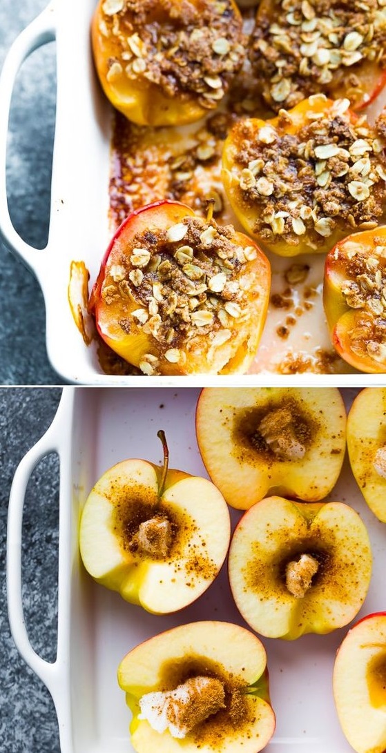 For the topping: melt coconut oil and mix all ingredients together. Then spread it over the apples.