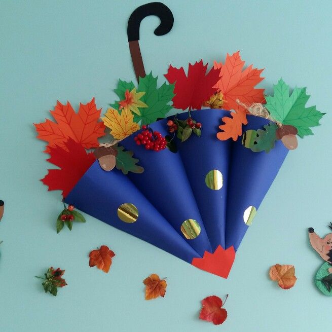 All you need for this beautiful autumn craft is cardboard. With the scissors cut out four rectangles that you roll up, the umbrella handle and some leaves. Fix everything and it’s done!