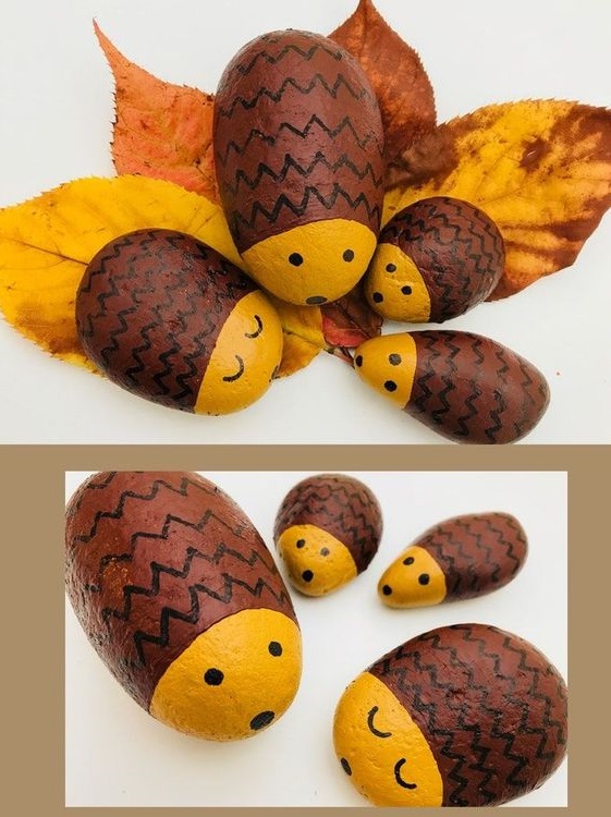 Create a little hedgehog family out of pebbles with your kids! Get some fine paint brushes and paint the pebbles so that they look like hedgehogs. This autumn craft might be easier for older kids with steady hands. You are looking for more creative ideas with stones? Have a look at the Story Stones For Kids.