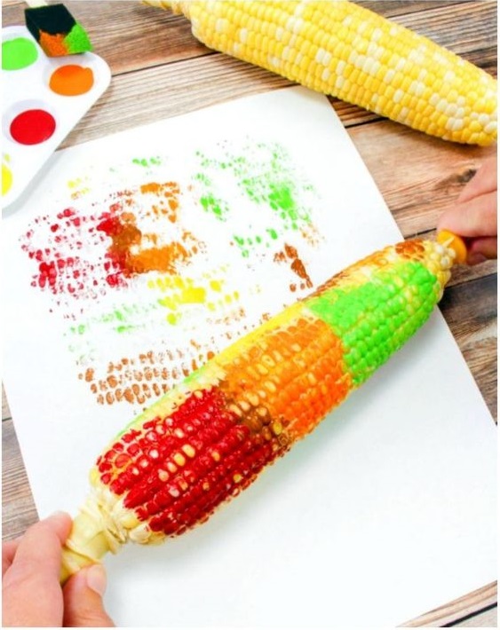 All you need for this colorful kids’ autumn craft is a corn cob and some autumn colors. Cover the corn cop with the colors and roll it on a piece of paper. Beautiful patterns will be created.