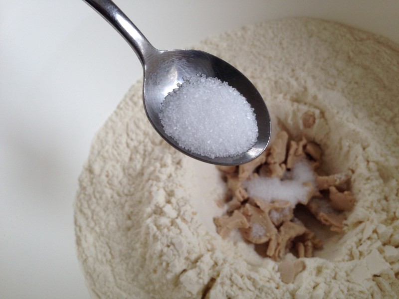 Add the eggs, butter, sugar, vanilla sugar and salt. Have your kids knead the dough with their hands.