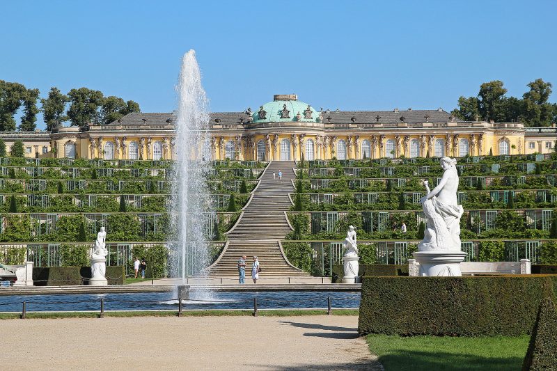 Sanssouci Palace is a beautiful rococo-style castle in Potsdam near Berlin. It was built in the 18th century for the Prussian king Friedrich II. and is surrounded by its own very nice big park. In the park you can take long walks along flower-lined paths, listen to the bird’s songs and enjoy a little break with your kids sitting at a rippling fountain. Probably this lovely surrounding is one of the reasons why the palace got the name “Sanssouci” which means “without sorrows” :-).